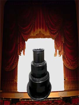 Fully portable four to six feet foot high, potout cakes. Stores comfortably anywhere against a wall or behind a door, it fits though all doorways, being only one and half feet wide when its collapsed. Then in seconds it expands to its full shape, by stacking small on large, into its true wedding cake shape pop out cake form. Each section weighs from five pounds to fifteen pounds, making placement an ease. Call for purchase or rental with less than One hour notice.